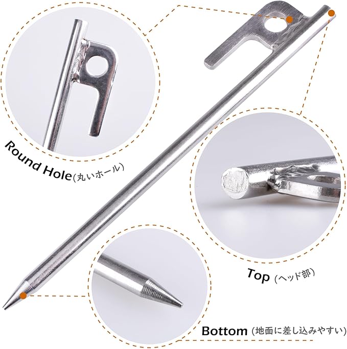 - ✅ EASY USE -- The hook prevents the stake from going too deep and use the hole to pull the camping stake out with a tent hammer. Just use a hammer to pull out the heavy duty stakes through the round hole or the hook