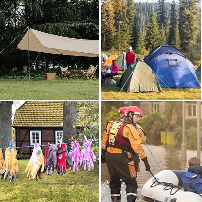• πŸ’ MULTI-USE - Tent guide rope can be used for camping hiking tents, camping clothesline, tarp hammocks, umbrella backpacks, cycling, fishing, hunting. It is an essential accessory for outdoor activities