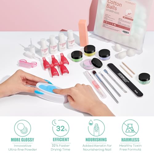 • 【Healthy & Nail-Friendly】AZUREBEAUTY dipping powder kit made with healthy ingredients, proven unique formula complex of rich calcium and vitamins, to gives nails high endurance and long-lasting strength. Which is Paraben & Cruelty-Free, Harmless & Non-odor, would not damage your nail bed, and is available for air-dry. (❤️Please note: Please avoid prolonged contact with skin and read the instruction carefully before you use this dipping powder starter nail kit.❤️)