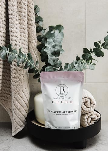 Bathorium Eucalyptus Apothecary Crush, Muscle Recovery Bath Soak, Eucalyptus & Tea Tree Oils, Post-Workout, Sinus Relief, pH-Balanced, 5+ Baths, 21 oz