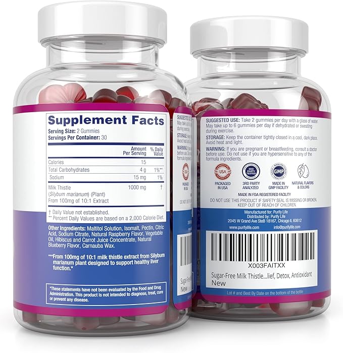 - [Improved Liver Care] The liver, the biggest solid organ in the body, is responsible for many essential body functions. Purify Life's milk thistle liver detox gummies promote a strong functioning liver by supporting the structure of the outer cell membrane of liver cells.