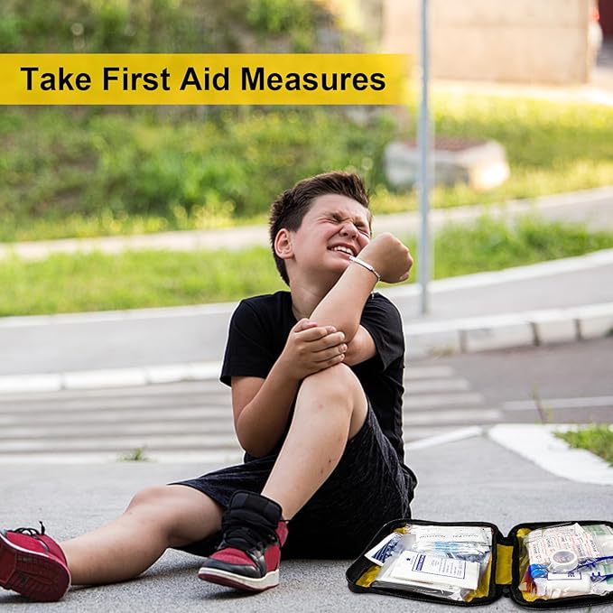 • First Aid Kit Must Have Essentials -- Convenient waterproof first aid kit with plastic compartments for quick and easy access to what you need (The zipper edge is not waterproof). Contains 300 pieces of basic daily first aid necessities such as cotton swabs, band aids, burn dressings, tongue depressors, bandages, gauze sheets, safety pins, triangular bandages, instant ice packs, scissors, plastic tweezers, etc. These home first aid kits are perfect for business trips, outdoor activities