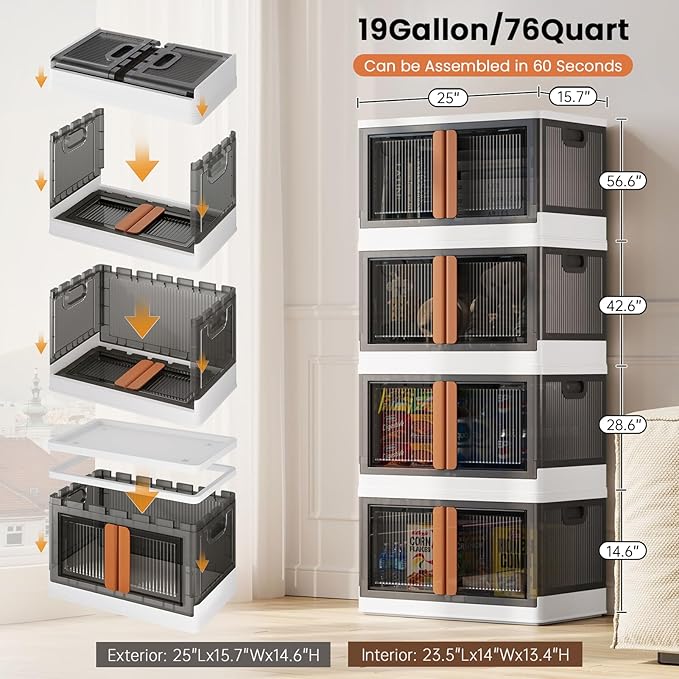 - Quick Assemble & Fold: Our storage containers can be assembled in 1 minute and folds down to 4 inches when not in use, easily tucking under beds/tight spaces—saves 80% of space. Heavy-duty PP plastic (2mm thick walls) supports 110 lbs (50 kg)/pack
