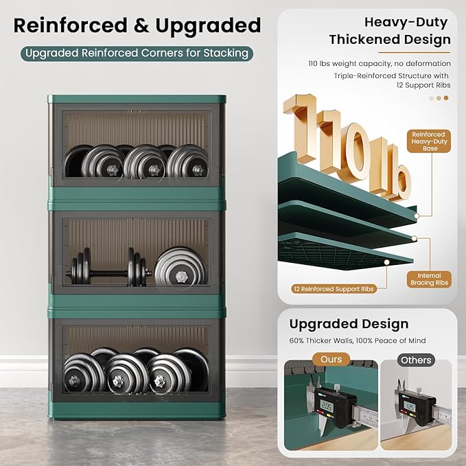 • Quick Assemble & Fold: Our storage containers can be assembled in 1 minute and folds down to 4 inches when not in use, easily tucking under beds/tight spaces—saves 80% of space. Heavy-duty PP plastic (2mm thick walls) supports 110 lbs (50 kg)/pack