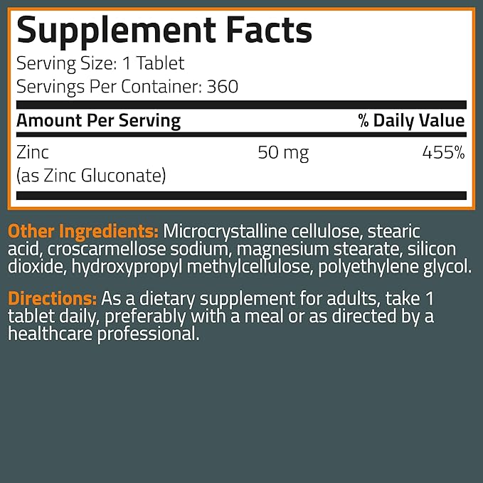 Bronson Zinc 50 MG High Potency One Year Supply Supports Immune, Antioxidant & Skin Health - Non-GMO, 360 Vegetarian Tablets