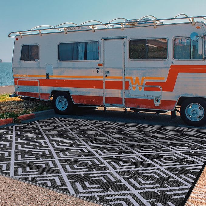 • Easy to Clean and Stain Resistant: The waterproof woven rug is quick dry and easy clean. When your pet steps with the dirt and enters the house, or when you lay out the shoes you walked outside at the door of your RV, just quickly sweep away dirt with a hose or wipe with wet cloth, then let them dry in the sun.