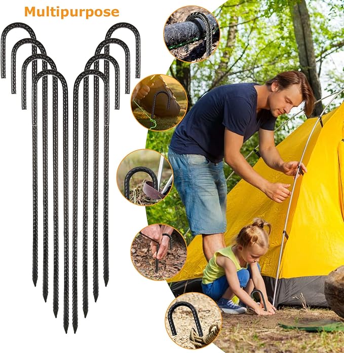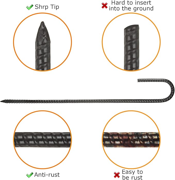 - Perfect Quantity & Size: 12 ground rebar stakes per set. Each rebar stake is about 15.7 x 5/16 inch thickness, enough quantity for your different fixing needs.