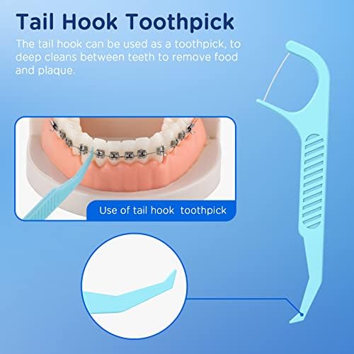 • TAIL HOOK TOOTHPICK: The tail hook of our braces floss picks can be used as a toothpick, to deep cleans between teeth to remove food and plaque.