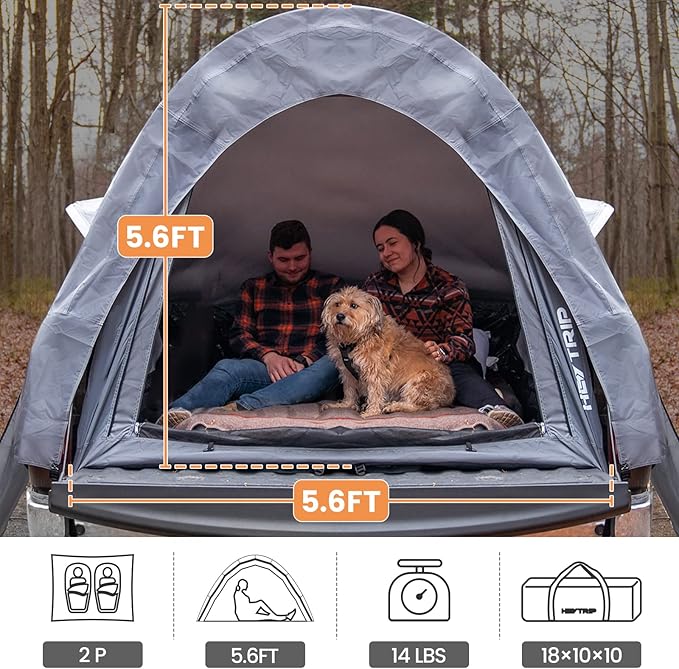 • Suitable For Pickup Truck:Transform your 5.5–6.0 ft pickup truck bed into a comfortable campsite with the HEYTRIP truck bed tent! This roomy pickup truck tent is perfect for camping and providing a cozy sleeping experience off the ground for two adults.