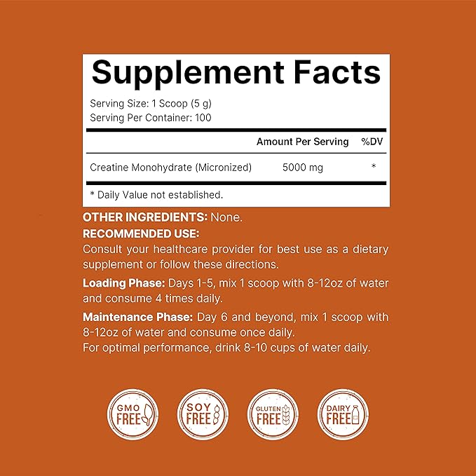 • Easily absorbed Non-GMO creatine powder. Made with keto & vegan friendly ingredients that are free of gluten, wheat, soy, dairy, eggs, fish/shellfish, tree nuts, and peanuts. It is also 3rd party lab tested for purity and potency.