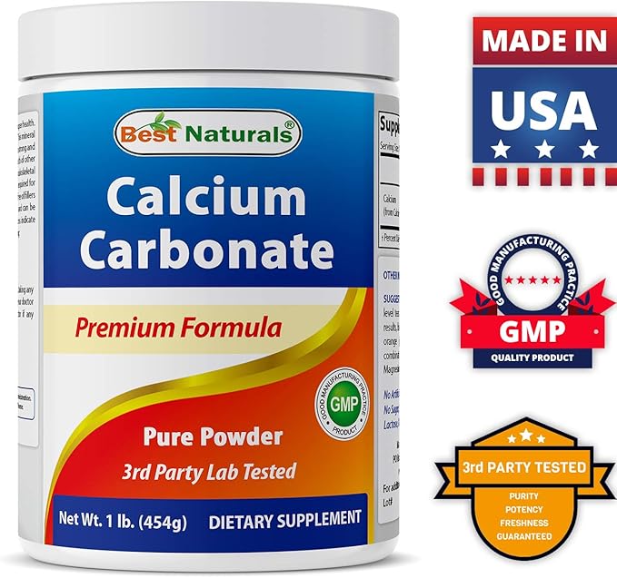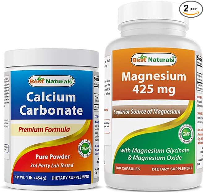 - ½ Level Teaspoon (1.6 g) of Calcium Carbonate per Serving, 284 Servings per bottle., 425 mg of Magnesium per Vegetarian Capsule - 180 Capsules per Bottle.