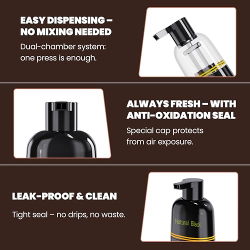 - [3 IN 1 Shampoo Hair Dye]: Different from traditional hair dye, our shampoo black hair dye is parabens free, no harsh chemicals. The color shampoo hair dye for women can be used not only as a black hair dye for women but also as a hair shampoo and hair conditioner with dense bubbles