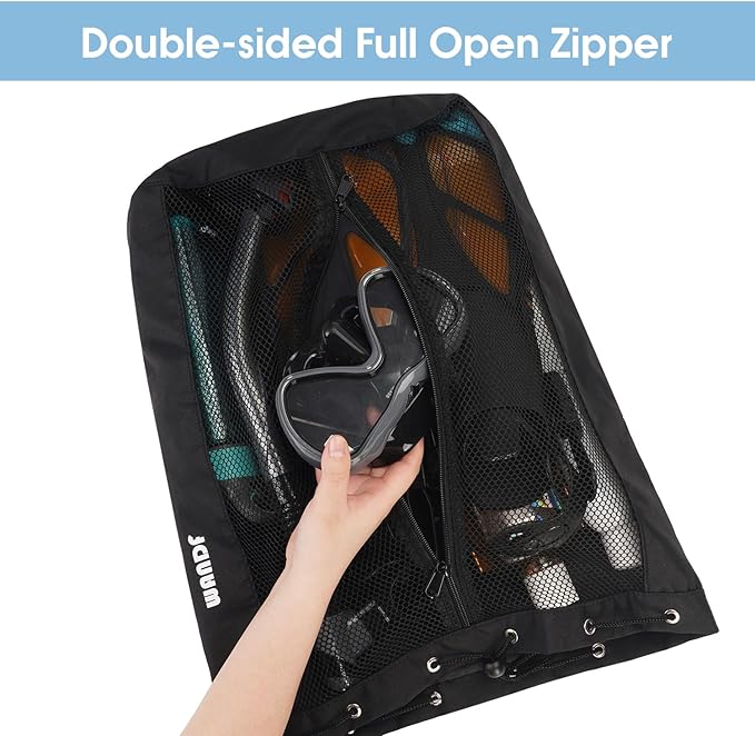 • Full-open design for easy access: Unlike traditional backpacks with a single top opening, our beach mesh backpack features two zippers that runs along the entire length of the backpack, allowing you to fully open it and easily access your gear.