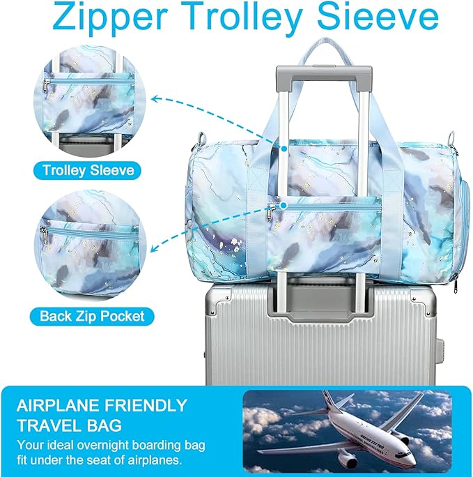 • Back side with rolling sleeve allows you to slide it over rolling suitcase, and the zippered pocket can hold earphones, mobile phones, charging cables, etc perfect used as a weekend travel bag taking with all your travel essentials.
