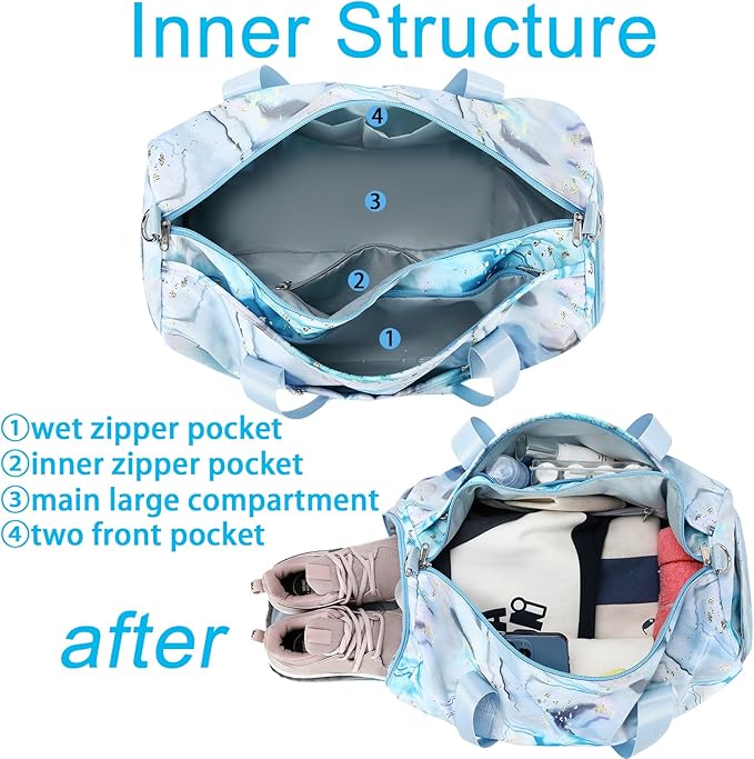 • Roomy main compartment to put sports jacket, pants, shirts, small gear and basketball. Adjustable and detachable shoulder straps, metal hooks and plastic shoulder straps ensure a fit and non-slip. It's a great duffel for gym, swimming, workout, travel, yoga, camping, hiking and many outdoor activities