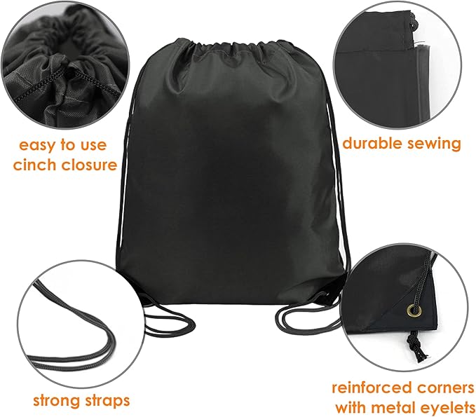 • 【FIT SIZE & LARGE CAPACITY】: The drawstring bags measure w 13.4 inches * h 16.26 inches which are big enough for carrying a variety of items, and perfect for everyday use. Great size for adults to carry around water bottles, clothes, sports shoes, accessories, small electronics, snacks, etc. Our gym backpack is also an ideal choice for a birthday party, fair prizes, carnival, construction giveaways, and so on.