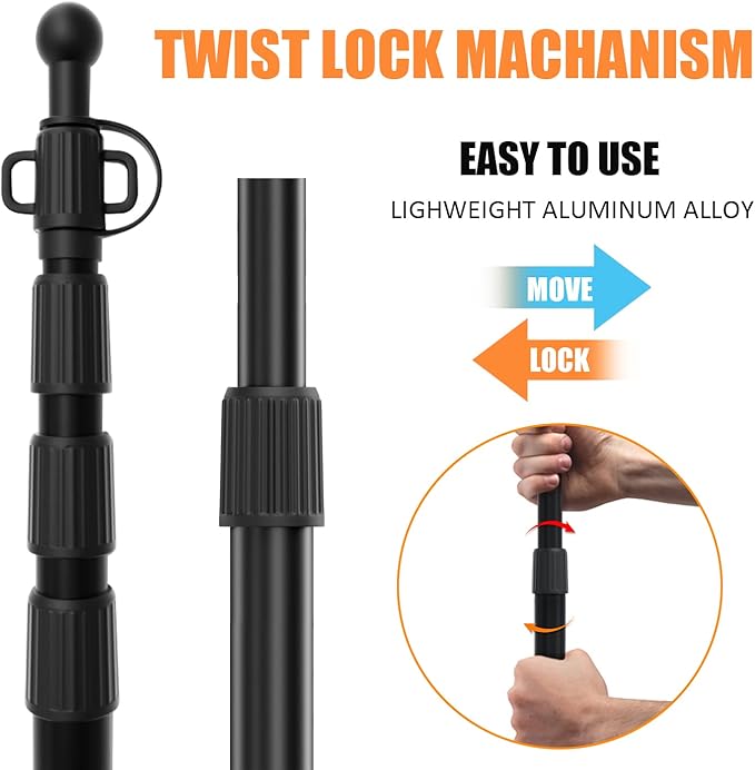 - 【STRONG& DURABLE】Our telescoping rods are made of premium aluminum with anti-corrosion processed, makes it survive all weather conditions. Wind-resistant design, horizontal bearing up to 26lbs., vertical up to 100lbs.