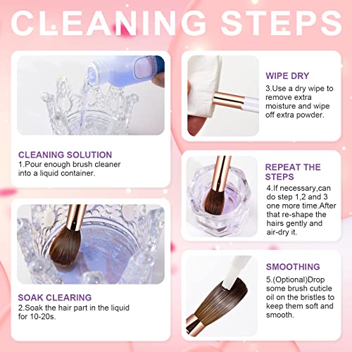 • 【Clean and Storage】After every application on single nail, make sure to clean the acrylic brush with brush cleaner to prevent the acrylic powder from clumping.Do not use acetone, it will remove the shine, make acrylic tacky and buildup residue. After cleaning, remove moisture with a paper towel, reshape, and keep it in the upright position.