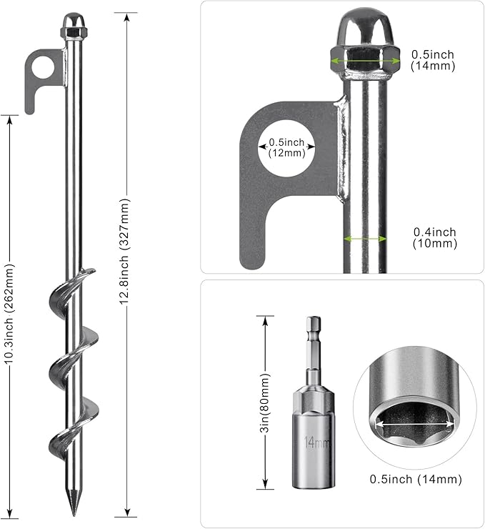 • 【Easy to Install and Remove】You can easily screw these spiral anchor into the ground with a drill and screw them out again when you don’t need them. You can install them in a few minutes, saving your time and effort.