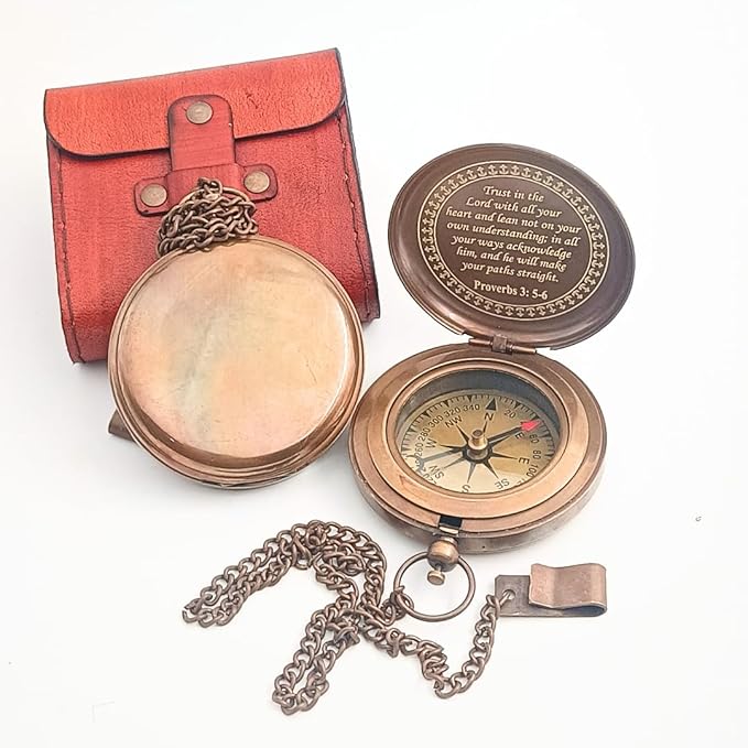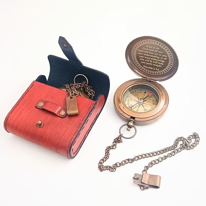 Trust in The Lord Compass - Proverbs 3:5-6 Engraved Brass & Leather Case Compass - Religious Gifts for Men, Baptism, Confirmation, Graduation Gift 2025