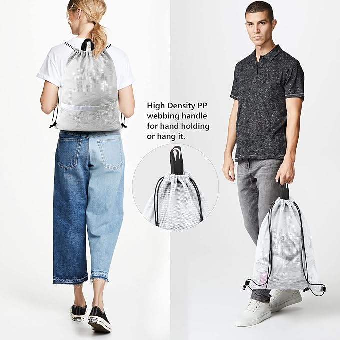 • Machine Washable & Two PP Webbing Handles & Collapsible: Large mesh drawstring backpack is machine washable and can dry quickly. Then our sports bag will come entirely clean and save your time. Two handles of our gym drawstring bags adopt high density PP webbing, suitable for hand holding or hang it. Our string backpack bag is easy to fold, without taking up much space. It's a perfect mesh gear backpack for any indoor or outdoor activities.