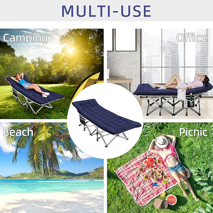- 28' Extra Wide & 18°Tilt Design: The 28-inch wide camping bed is perfect for adults. The top of the cot is tilted 18°to make your head more comfortable when lying down, provide comfortable sleep to you. The sleeping bed can be used for camping, home and office and is perfect for nighttime rest, family naps and office breaks.