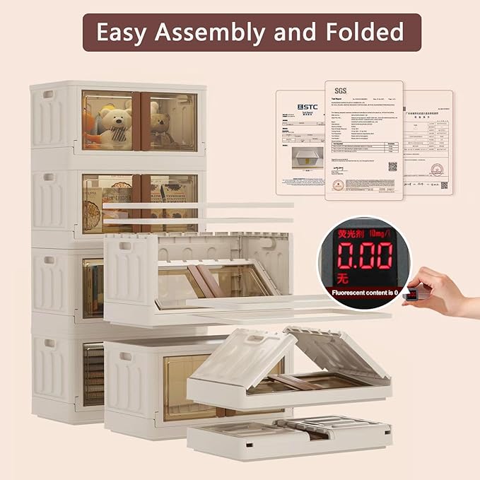 • Quick Assemble & Fold: Our storage containers can be assembled in 1 minute and folds down to 4 inches when not in use, easily tucking under beds/tight spaces—saves 80% of space. Heavy-duty PP plastic (2mm thick walls) supports 110 lbs (50 kg)/pack