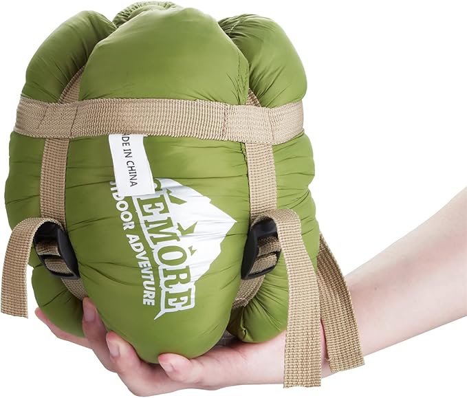 - FOR WARM WEATHER CONDITION: This compact sleeping bag is suggested to use at 59 -- 77 degrees Fahrenheit, great for summer and warm spring and fall outdoor camping, backpacking or hiking.