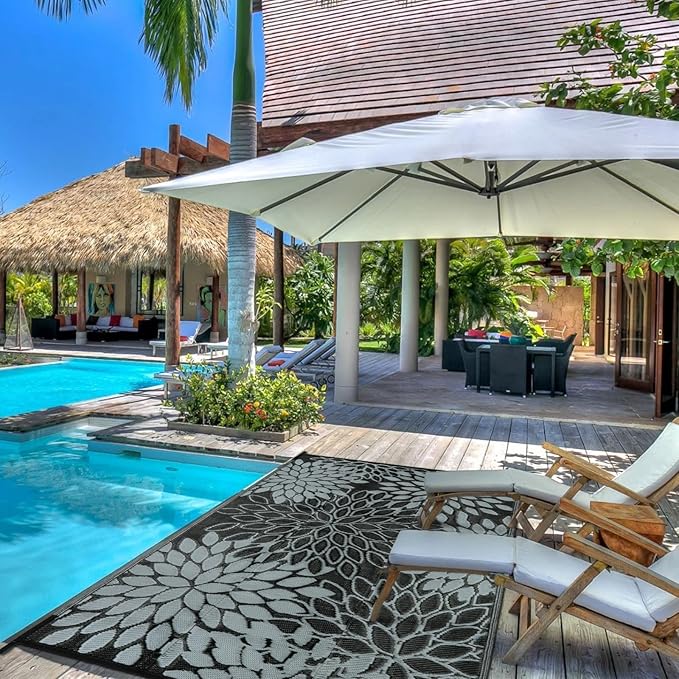 - UV Resiatant & Weatherproof: Waterproof outdoor carpet made from UV coated polypropylene to resist high temperature, fading and other sun damage, even long-lasting use in stormy/windy/snow weather will not cause any deformation or damage. Note: Colors show different in pictures due to lighting.