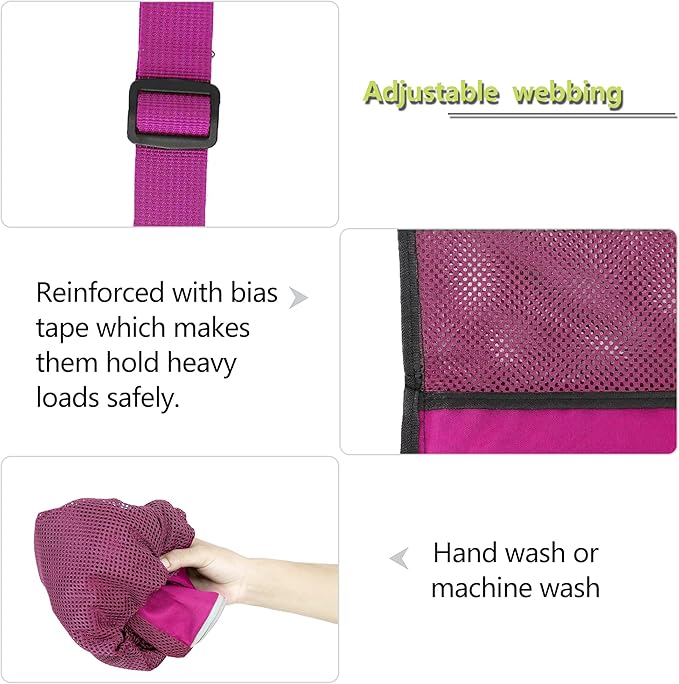 - ADJUSTABLE SHOULDER STRAP & SECURE DRAWSTRING CLOSURE: The large mesh beach bag has an adjustable carrying strap, can adjust them to the length that suits themselves. Sling design can free up your hands, and a sturdy wide strap avoid digging into your shoulders and help reduce your shoulder burden. Besides, the swim pool bag is a drawstring design to store gear easily and take them out quickly.
