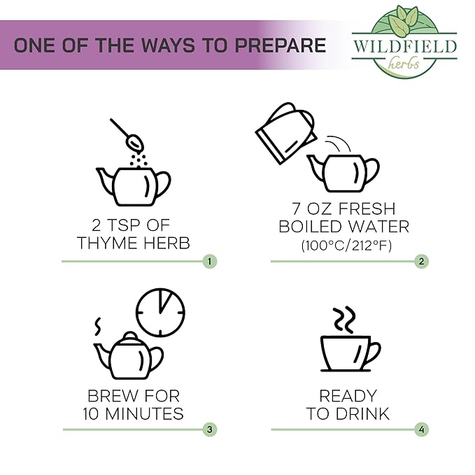 • Active Ingredients of Thyme Leaves Tyme Herb Tea: Thymi Serpiylli Herba - 100%