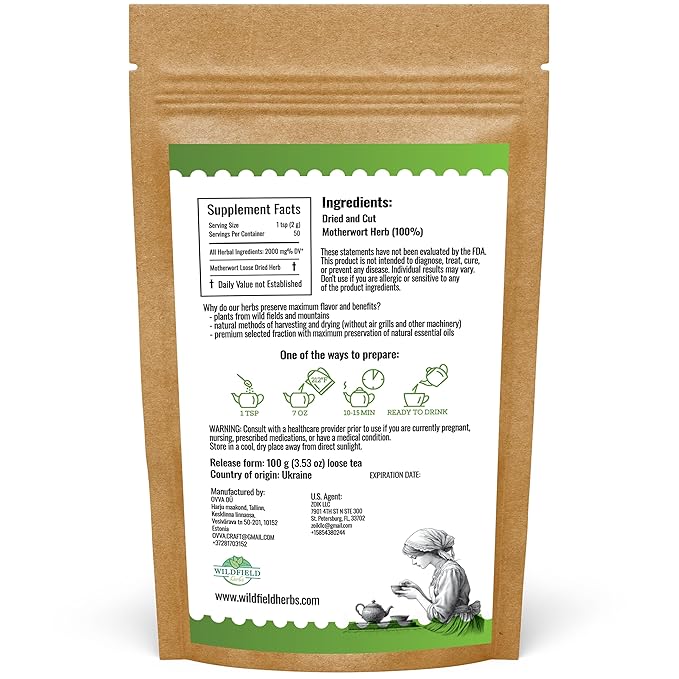 - Condition of Motherwort tea : a brand-new, boxed of Dried Motherwort Herb Tea as depicted