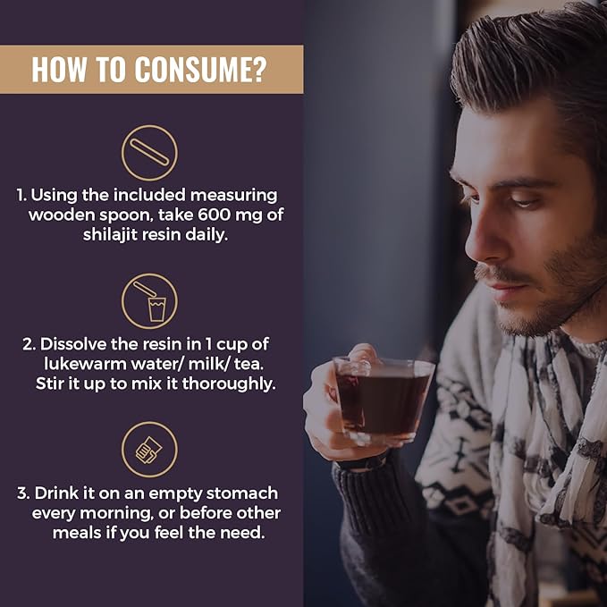 • Ajoblanco Shilajit Resin is a unique and potent source of over 85 trace minerals, including fulvic acid. Our unique shilajit supplement provides the essential minerals your body craves to stay energized and ready to tackle your day. Using it couldn't be simpler! Just dissolve a pea-sized piece of Shilajit resin in 1 cup of warm water, or drinks you like. It's a quick and easy step to take control of your overall wellness with the power of Shilajit from the Himalayas
