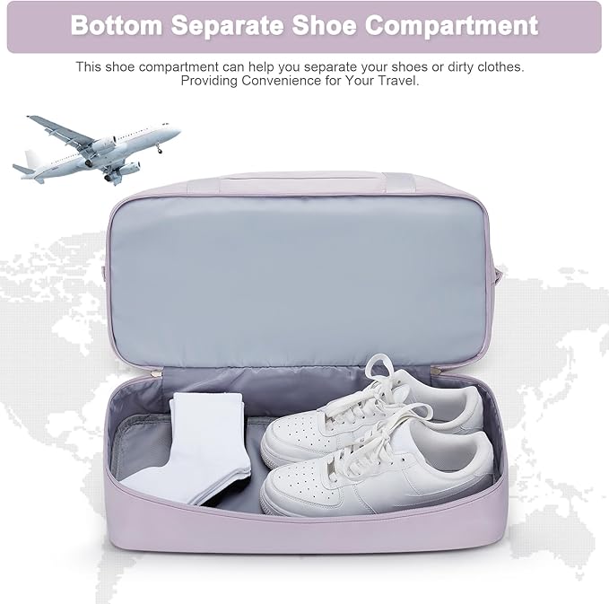 - Travel Bag with Shoe Compartment : The weekender bags for women travel is designed with shoes compartment at the bottom to separate your dirty shoes from the rest of your clothes