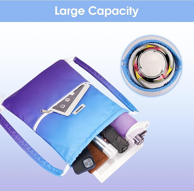 • LARGE CAPACITY: WANDF string backpack for men&women with large compartment measures 15.5' x 13.3', which is big enough for football, gym clothing, sport towel, ipad, textbooks and daily supplies.