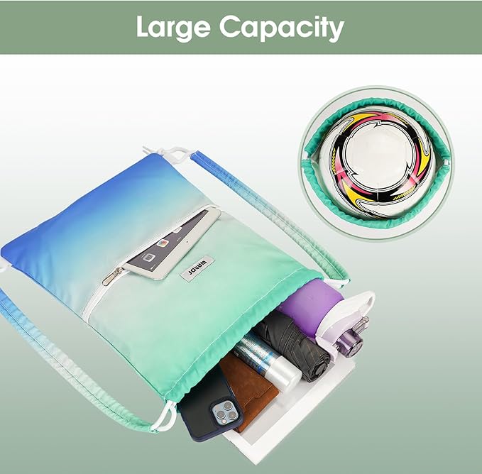 • LARGE CAPACITY: WANDF string backpack for men&women with large compartment measures 15.5' x 13.3', which is big enough for football, gym clothing, sport towel, ipad, textbooks and daily supplies.