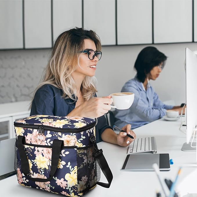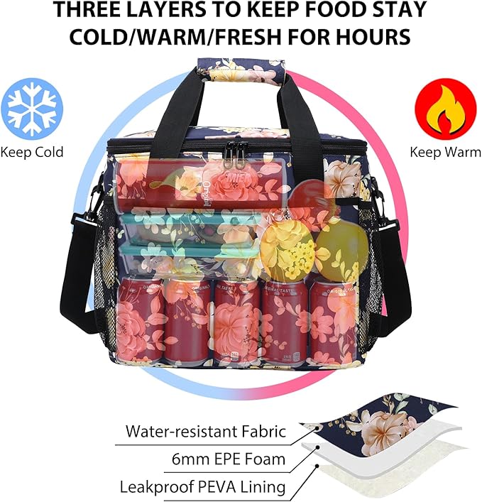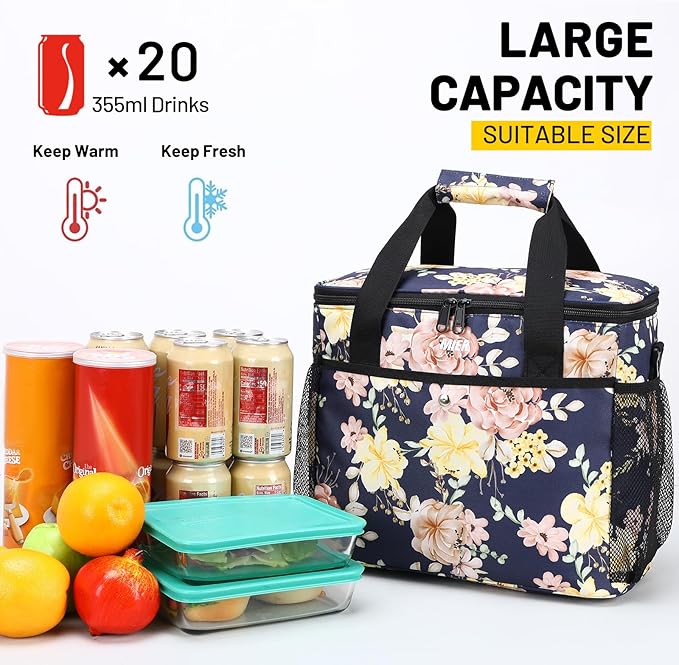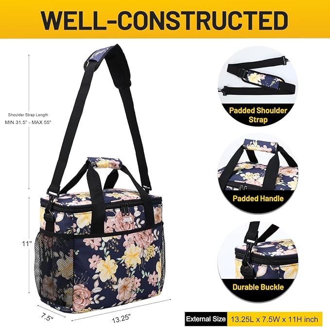 MIER 18L Large Soft Cooler Insulated Picnic Bag for Grocery, Camping, Car, Navy with Flower