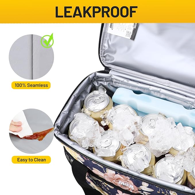 • Insulated and Waterproof Lunch Cooler ---- Heat-welded seams prevent flexible liner leaks; Easy-to-clean permanent, flexible, soft PEVA liner and food safety