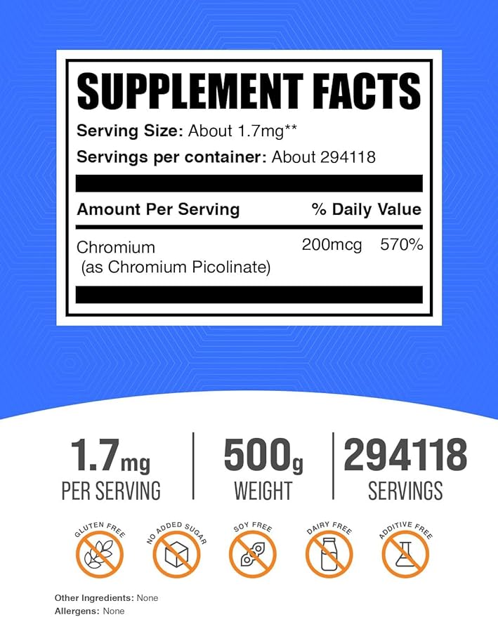 - Designed for Optimal Health: Elevate your daily wellness routine with our Chromium Picolinate 200mcg, in Chromium powder. These are not just supplements; Chromium supplement is a daily investment in your wellbeing, meticulously formulated to ensure your body receives the perfect balance of essential minerals for optimal health.