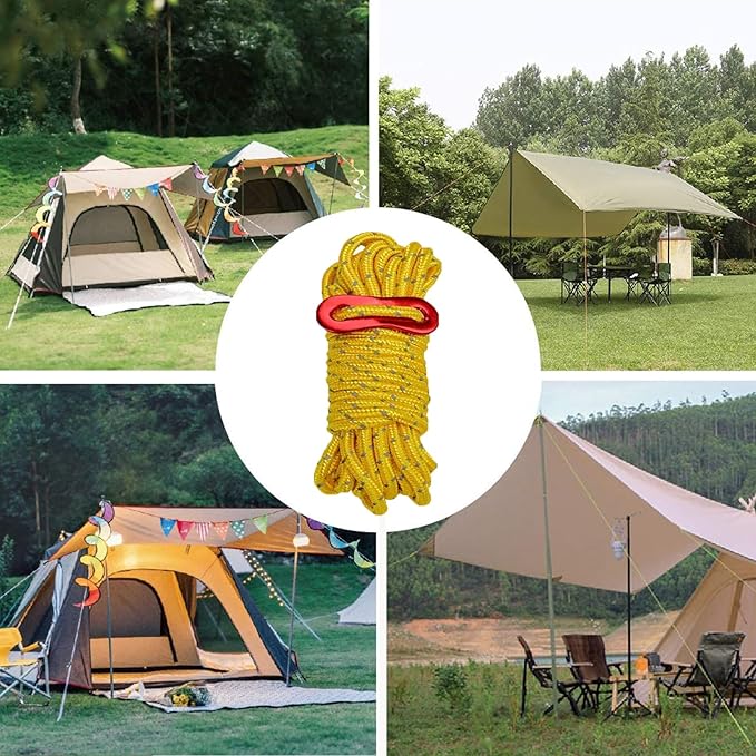 • 4mm Outdoor Guy Lines Tent Cords Reflective Canopy Wind Rope Lightweight Camping Rope with Aluminum Guylines Adjuster for Tent Tarp, Canopy Shelter, Camping, Hiking, Backpacking