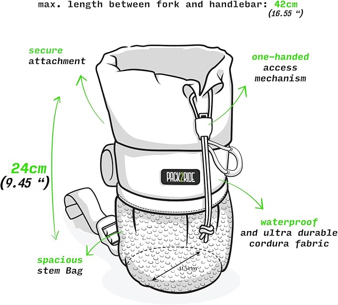 • Secure Attachment: Designed for stability, this bar bag attaches firmly to your bike handlebar and stem, ensuring it stays in place even on bumpy trails or rough terrain.