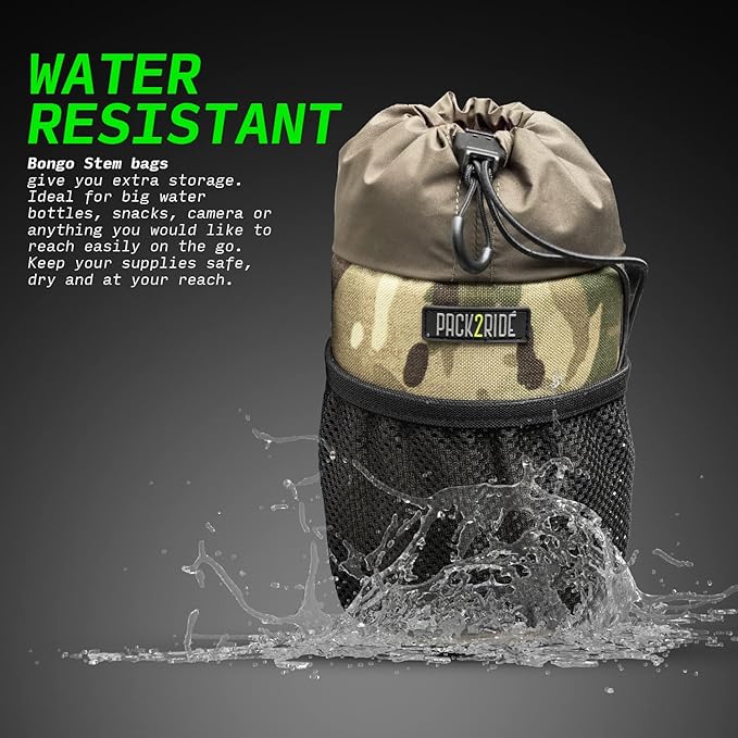 Bongo Bike Handlebar Bag - Water Resistant & Durable Fabric Bicycle Water Bottle Holder, Secure Attachment Bikepacking Stem Bag, Front Biking Storage, Bike Organizer for Cycling - Camo
