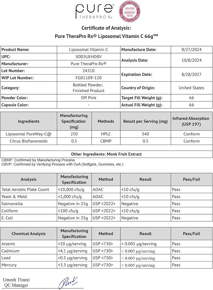 - πππππππππππ πππππππ, πππππππ πππππππ: When it comes to your well-being, trust matters. That's why Pure TheraPro Rx's Liposomal Vitamin C powder is meticulously manufactured in NSF-certified facilities in the USA. Following FDA's rigorous cGMP guidelines, every bottle carries the mark of quality assurance. With each 250mg serving delivering 278% DV of liposomal Vitamin C, nourish your body with the finest and most absorbable form available.