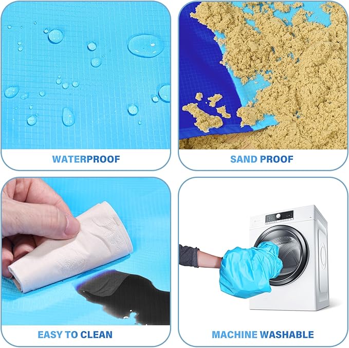 - 🏖️Beach Blanket Waterproof Sandproof:78''×81''size beach blanket,suit for 1-5 adults in total,odorless,made by parachute fabric.Rip-stop 210T polyester,light weight and small after folding.12 oz easy to carry,small and mighty!