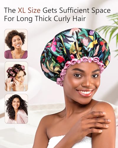 - 🎈Versatile Use -- Our shower caps are suitable for use in any bathroom. Whether you're at home or traveling, our shower cap is perfect to keep your hair dry and shiny. It's also ideal for use during hair treatments or spa sessions.