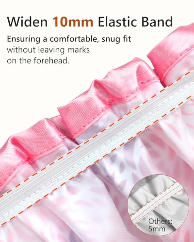 - 🎈Superb Waterproof--This shower cap features a double layer and a wide elastic band, ensuring a snug fit without leaving marks. The unique 20mm lace curves outward at a 30-45 degree angle, effectively isolating water droplets and keeping the forehead and neck dry.
