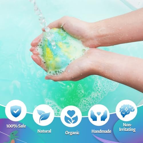 • dissolves and rinses with Natural and Organic Bath Bombs: Made from organic shea butter and essential oils, all bath bomb ingredients meet or exceed all safety standards and are safe to put in your child's bath and are safe and gentle for your kids. Easily dissolves and rinses without leaving marks on the tub.out leaving marks on the tub, perfect for kids gifts.