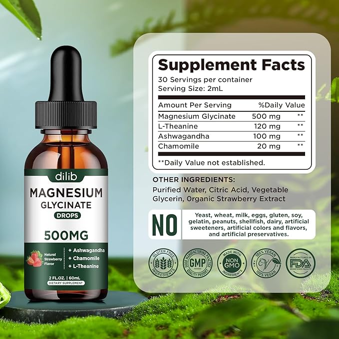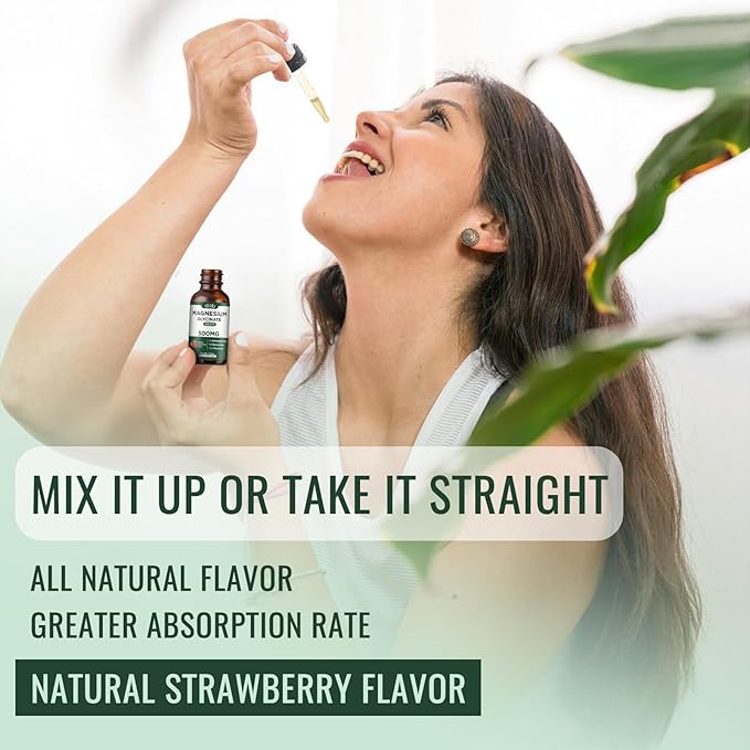 - NATURAL STRAWBERRY FLAVOR AND VEGETARIAN: The great tasting magnesium glycinate drops have a yummy strawberry flavor that everyone loves. And easier to take: directly into the mouth or placed under the tongue which may have a faster and higher absorption rate compared to capsules, pills, or gummies. It is soy free, non-GMO, gluten-free, dairy-free, and vegan-friendly which is more suitable for all men's and women's dietary needs