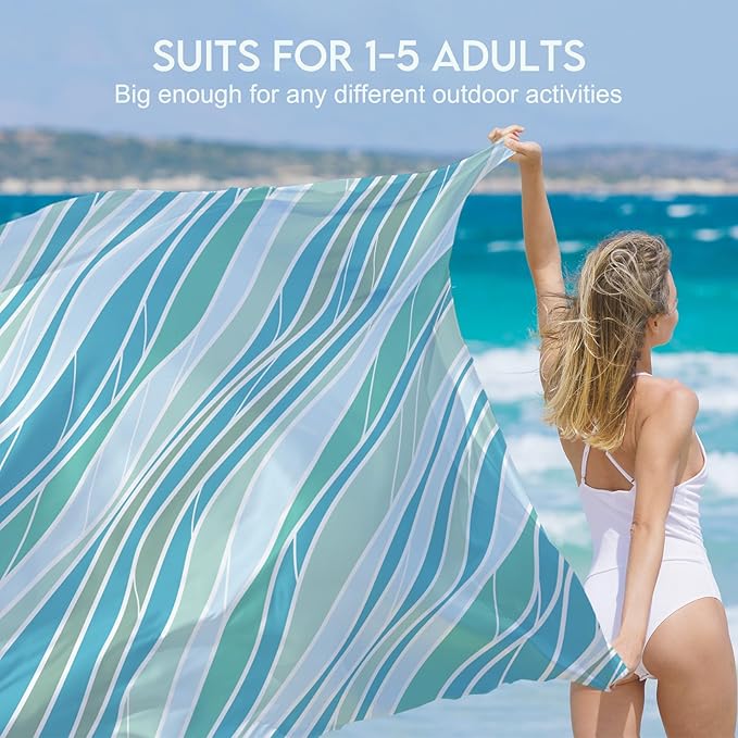 • 🏖️Beach Blanket Waterproof Sandproof:78''×81''size beach blanket,suit for 1-5 adults in total,odorless,made by parachute fabric.Rip-stop 210T polyester,light weight and small after folding.12 oz easy to carry,small and mighty!