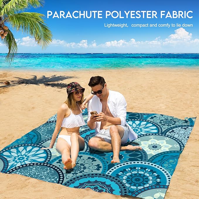 - 🏖️Beach Blanket Waterproof Sandproof:78''×81'' Size beach blanket comfortable fit 1-5 adults,Odorless.Made by parachute fabric,Rip-stop 210T polyester,very light and small after folding.12 oz easy to carry,small and Mighty!